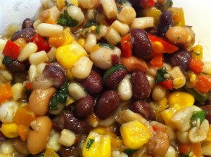 During our Tastes Like Freedom party, we grilled pizzas, potato and paneer skewers and eggplant for baba ganoush. But I knew I’d need a few things I could whip together beforehand and toss on the table. I remembered I hadn’t made one of my favorite dishes this summer — Texas Caviar. I realize this reveals just how pretentious I can get, but I tried several times to think of a better name for the dish. I settled on Salsa Fresca for the menu for the party … but at least one friend was horrified, thinking I’d taken the Tequila Fresca idea a bit too far and turned it into food. Hadn’t thought of that.
