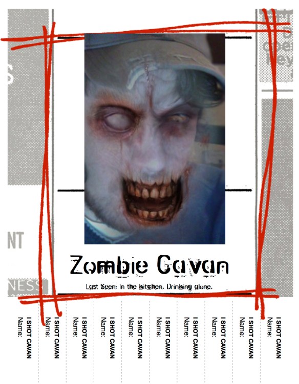 And for a little entertainment for the guests while they mingle, I made up a game called Zombie Attack! I created zombified photos and videos of the guests and created “Wanted” posters for each of us. The first 10 guests who find each zombie get to “shoot” them and enter a drawing. This is a completely normal thing to think of. You should do it. Just let Zombie Cavan play, too.